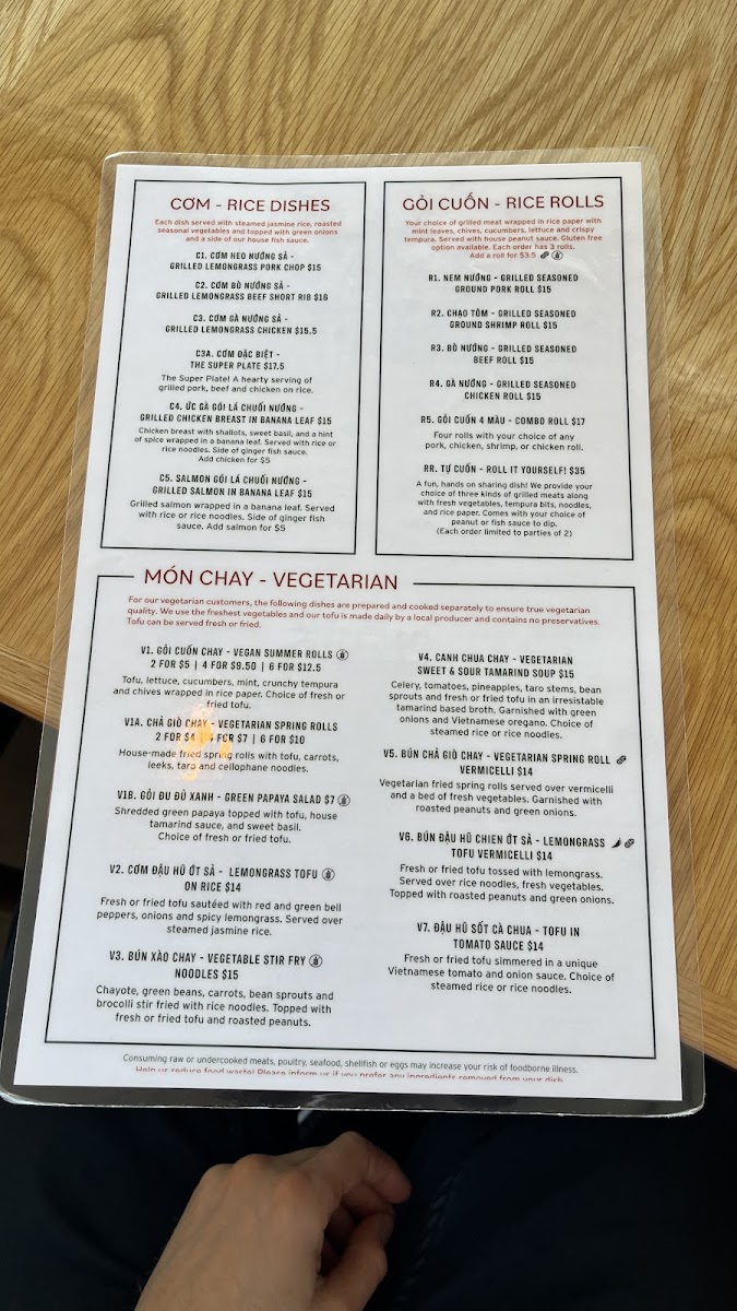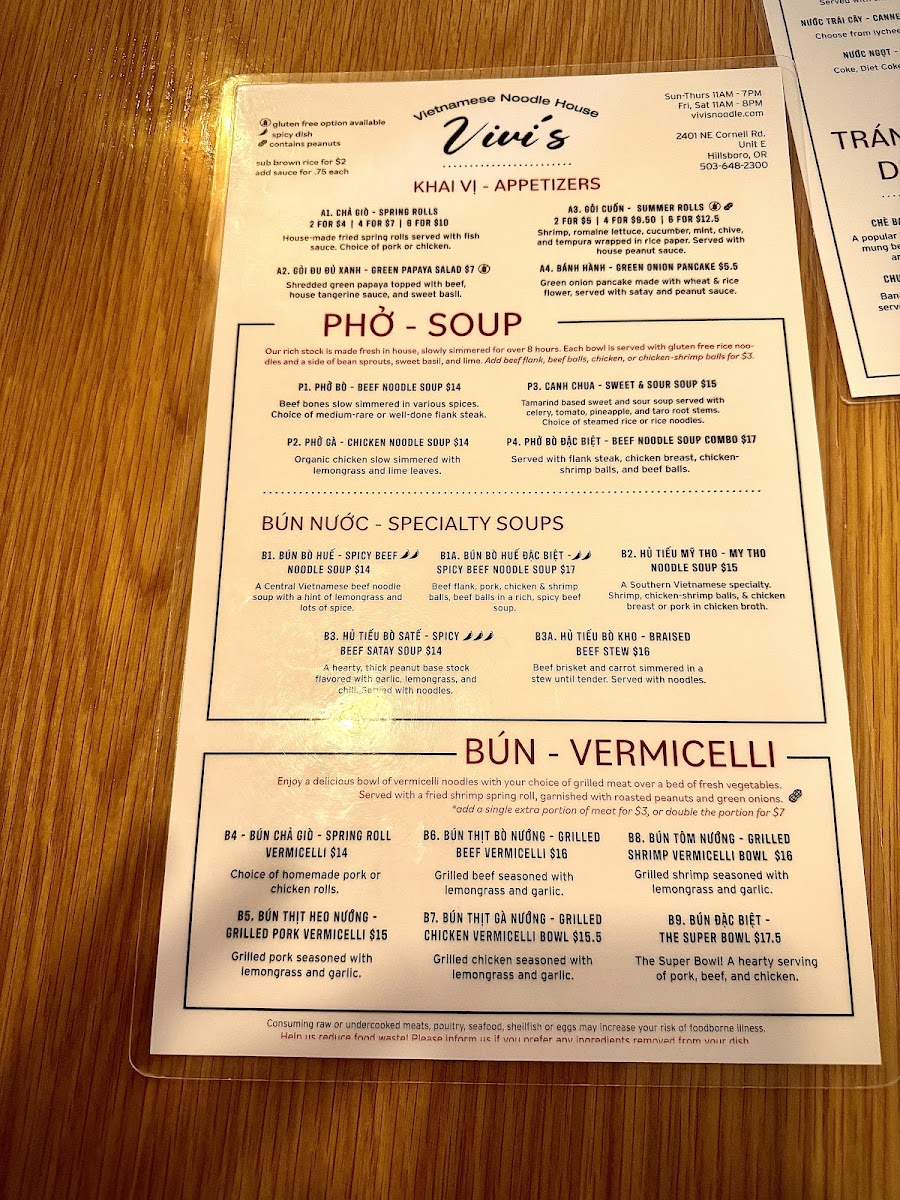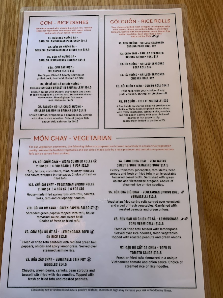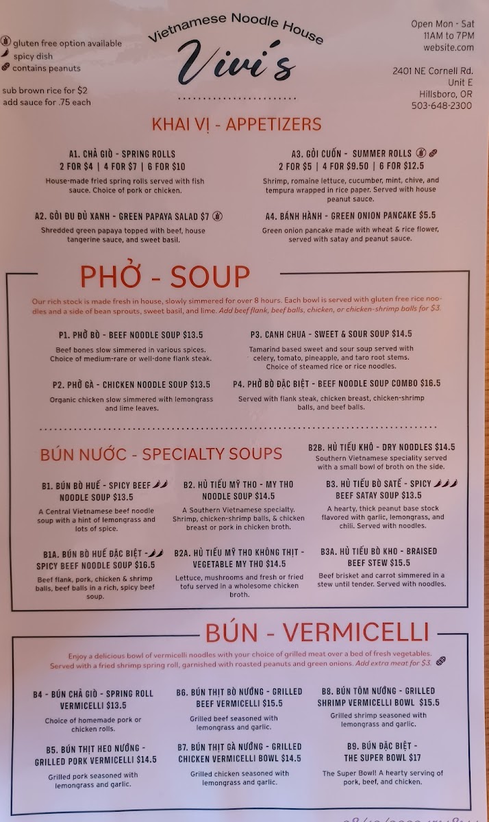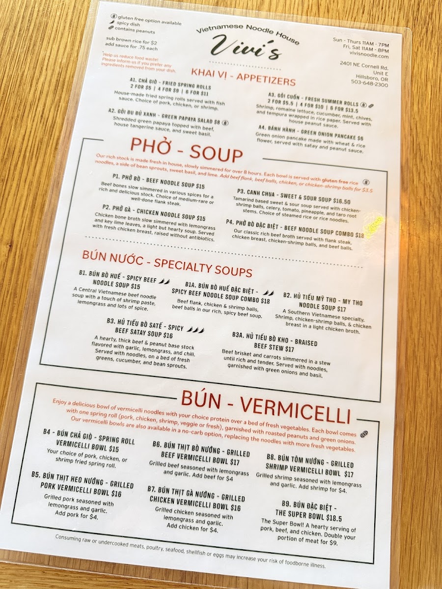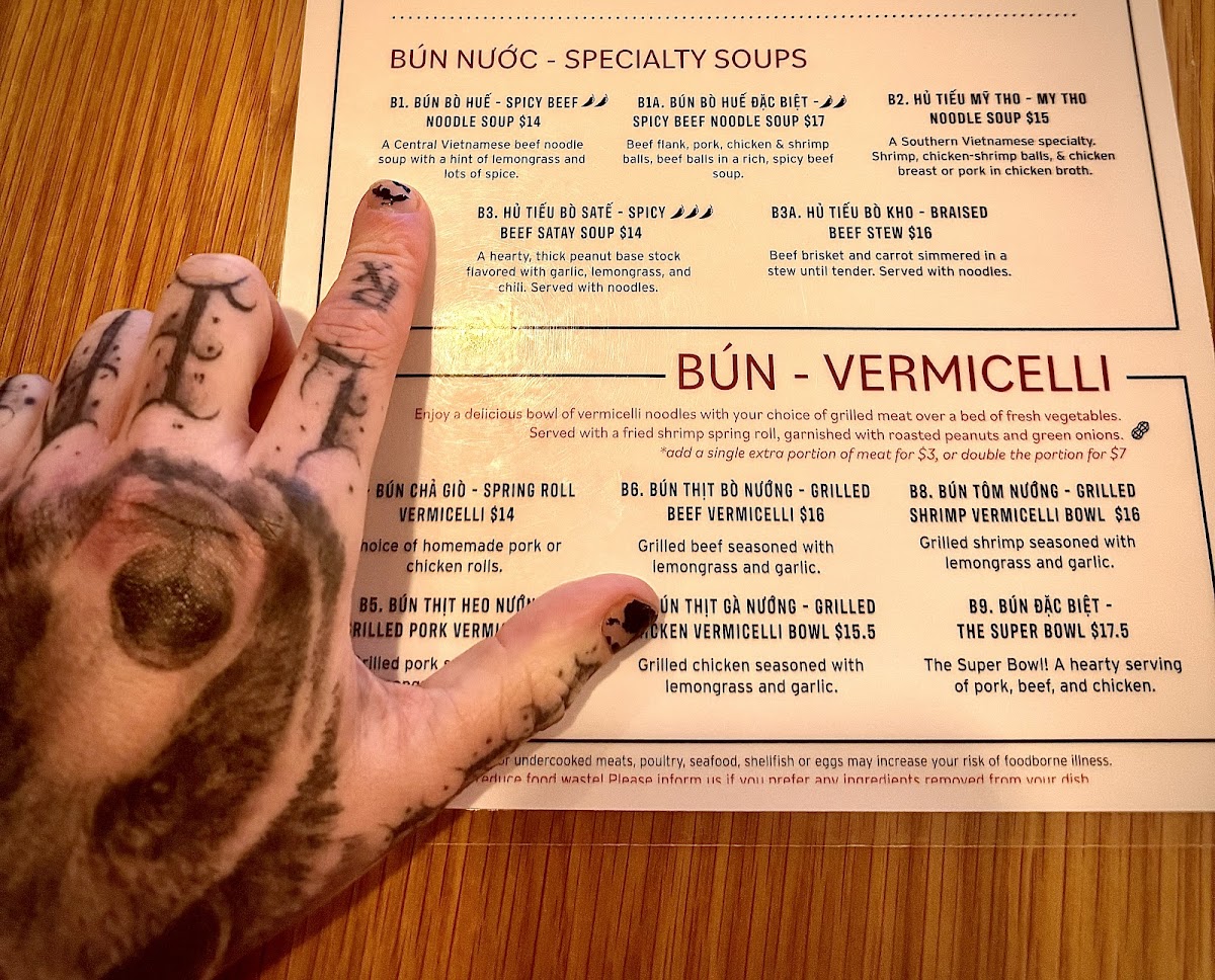 Originating from Central Vietnam, this beef noodle soup has a hint of lemongrass and a lot of heat. Each bowl is served with beef flank steak, a side of mixed vegetables and a wedge of lime.