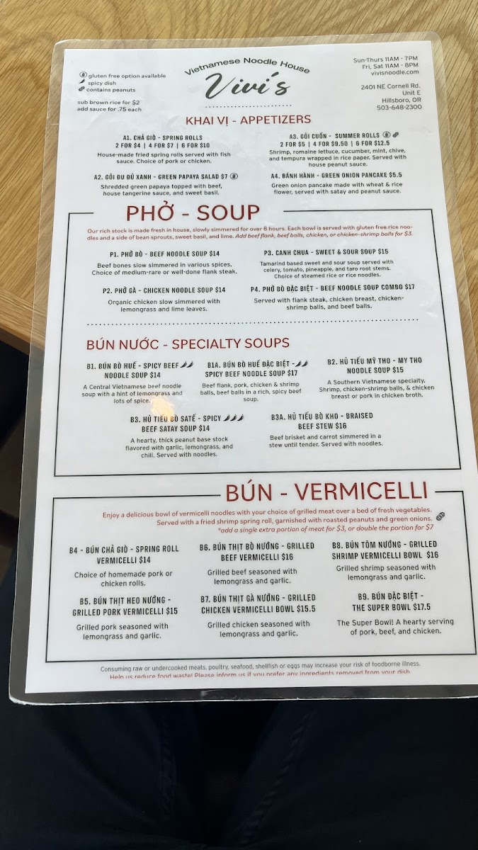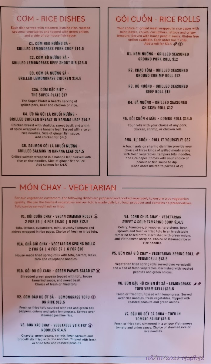 A Southern Vietnamese specialty, this noodle soup has a distinctive chicken-based stock. Each bowl is served with shrimp, sliced chicken breast, imitation crab meat, chicken and shrimp balls, chives, romaine lettuce and a side of bean sprouts and lime.